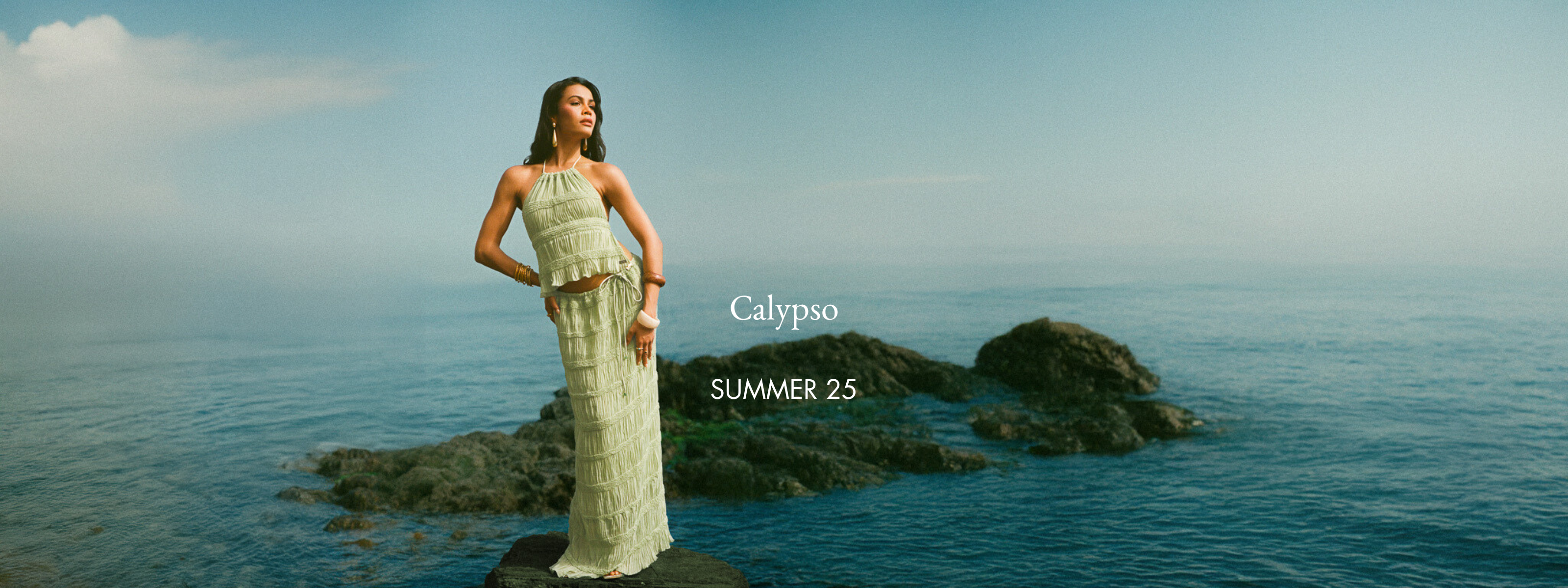 Calypso célèbre une féminité libre et insaisissable. Des satins lumineux, des épaules dorées par le soleil, des silhouettes qui captent la lumière comme les vagues. Inspirée par la nymphe légendaire qui faisait chavirer les cœurs avant de disparaître sans un regard en arrière, cette collection d’été incarne la liberté, la séduction et une puissance tranquille, qui n’a pas besoin de mots pour s’imposer.